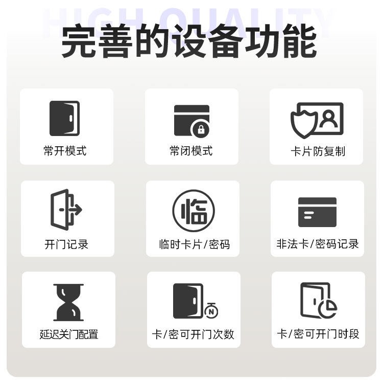 防城港这款智能门锁提供室内门锁和防盗门锁两种选择,其中室内门锁尺寸为 2806521mm,适配 5050 锁体;防盗门锁尺寸为 3657021mm,适配 6068 锁体,可满足不同场景的安装需求。它采用铝合金一体成型搭配钢化玻璃面板打造,兼具坚固耐用的品质与简洁美观的视觉效果。门锁支持蓝牙无线通讯,解锁方式丰富多样,密码、卡片、蓝牙、钥匙四种方式随心选择,满足不同使用习惯与应急需求。其工作温度范围为 - 20~70℃,能适应多数地区的气候条件,采用碱性电池供电,安装更换便捷,是兼具安全性与实用性的门锁选择。